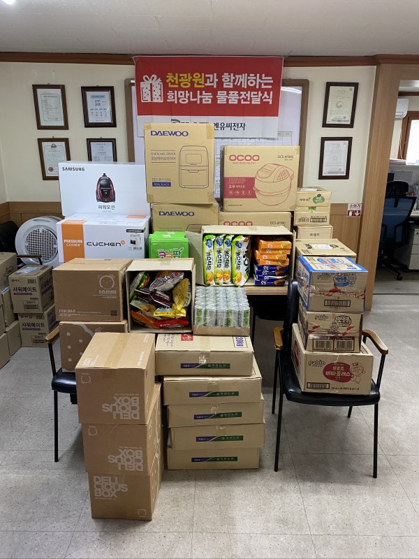 추석명절을 맞아 NUC전자에서 가전류와 생필품, 간식류를 후원해 주셨습니다.