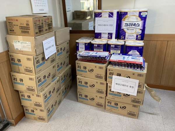 추석명절을 맞이하여 북대구세무서에서 코로나 19로 인해 직접 방문하지 못하시고아동들을 위한 다양한 생필품을 후원해 주셨습니다. 후원해 주심에 깊은 감사를 드립니다.