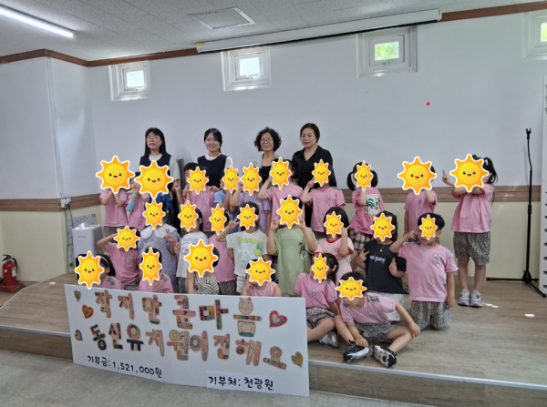 동신유치원 원생과 선생님께서 후원금 전달해주셨습니다.